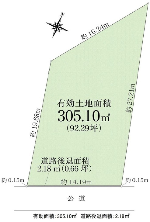 ◆南側公道幅員約3.85mに間口約14.19mが面した整形地です