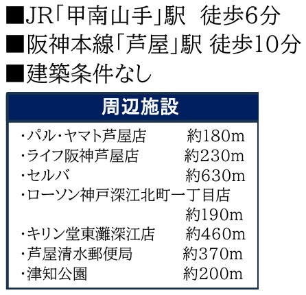 ◆JR「甲南山手駅」徒歩9分・「芦屋駅」徒歩14分/阪神「芦屋駅」徒歩9分/阪急「芦屋川駅」徒歩12分 |