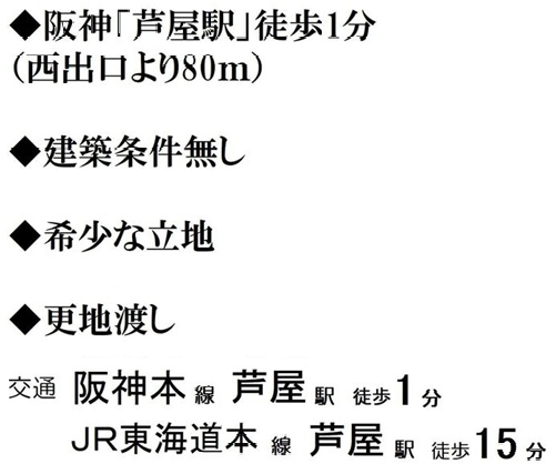 ◆阪神「芦屋駅」徒歩5分/JR「芦屋駅」徒歩10分/阪急「芦屋川駅徒歩17分