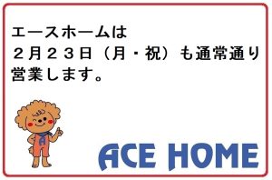 今日はエースホームブログに『エースホームは2月23日(月・祝)も休まず営業します。』を書きました!