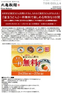 今日はエースホームブログに『丸亀製麺では釜玉うどん(並)を注文するともう1杯無料キャンペーンが、2月27日(金)まで開催中です。』を書きました!
