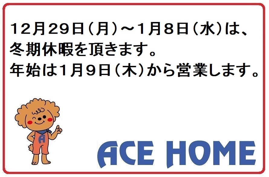 今日はエースホームブログに『冬期休暇(年末年始のお休み)のお知らせ』を書きました!