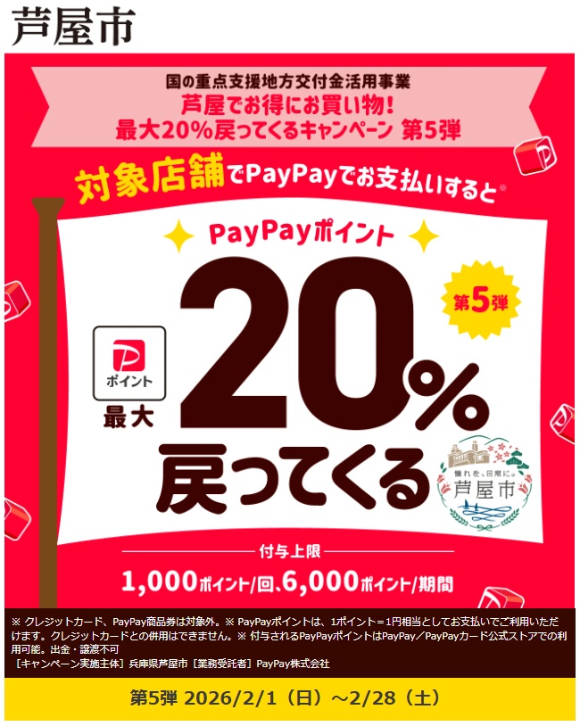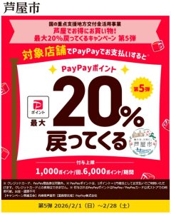 今日はエースホームブログに『芦屋市でお得にお買い物! PayPayペイペイで最大20%戻ってくるキャンペーンが2月28日まで開催されます♪』を書きました!