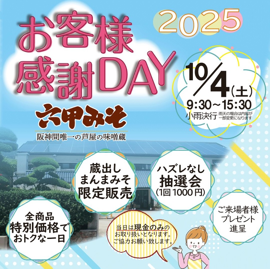 今日はエースホームブログに『芦屋市楠町にある六甲みそで2025年10月4日(土)にお客様感謝デーが開催されます♪』を書きました!