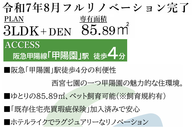 | 西宮市甲陽園本庄町5-32 | 阪急甲陽線/甲陽園駅 徒歩4分 |