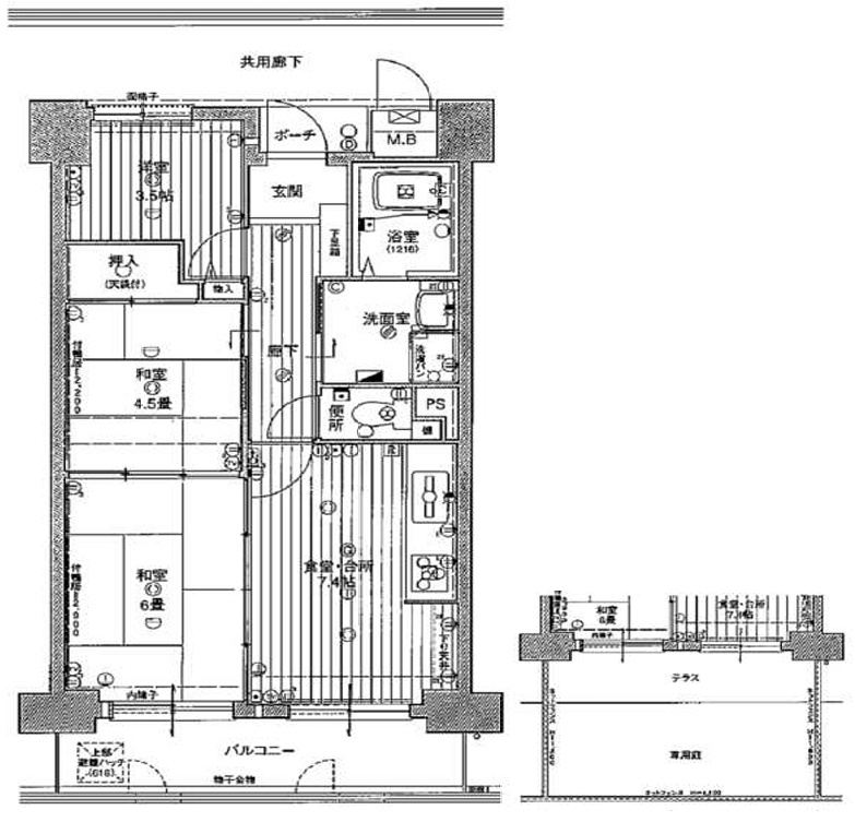専有面積 バルコニ面積 |