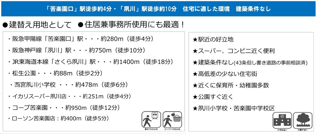 | 西宮市松生町 | 阪急神戸線/夙川駅 徒歩9分 |