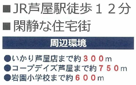 | 交通 | JR東海道線 JR芦屋駅まで 徒歩12分 |