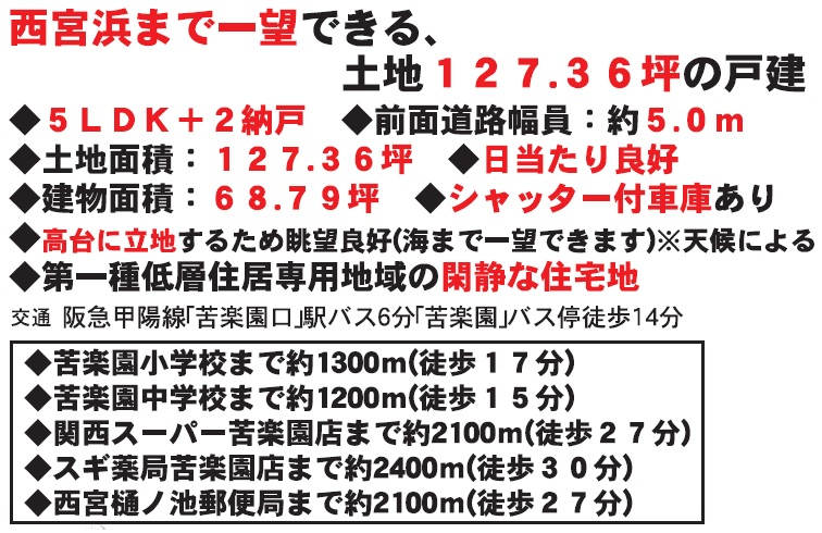 | 交通 | 阪急神戸線 夙川駅まで バス12分 停歩14分