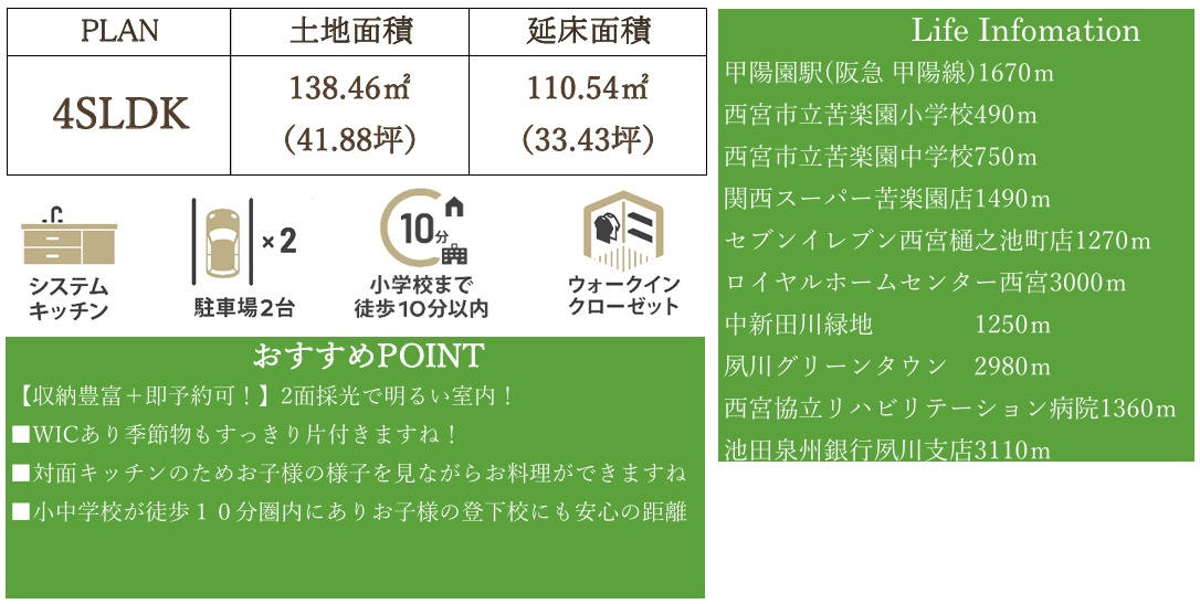 | 交通 | 阪急甲陽線 甲陽園駅まで バス13分 停歩23分 |