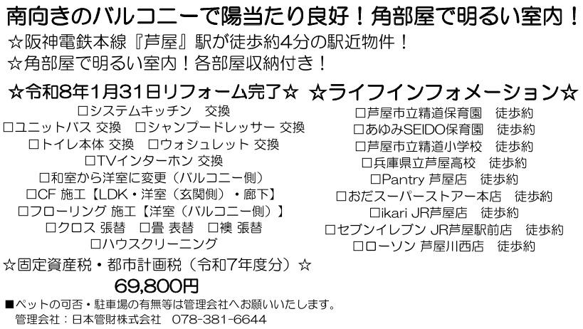 | 交通 | 阪神本線 阪神芦屋駅まで 徒歩4分