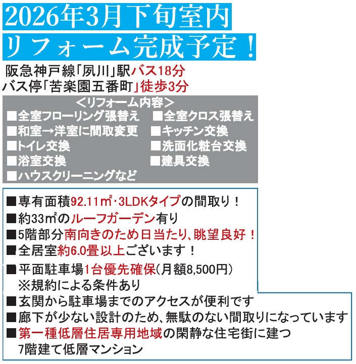 ◆2026年3月下旬リフォーム完成渡し:システムキッチン交換/ユニットバス交換/洗面化粧台交換/トイレ交換(温水洗浄便座付)/建具交換/フローリング張替/クロス張替/CF張替/和室→洋室間取り変更/ハウスクリーニング/等