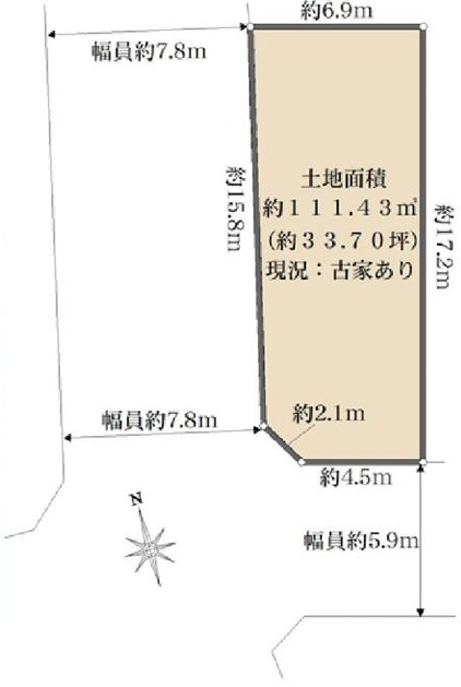 ◆公道幅員約4.6mに間口約17.4mが面した整形地です