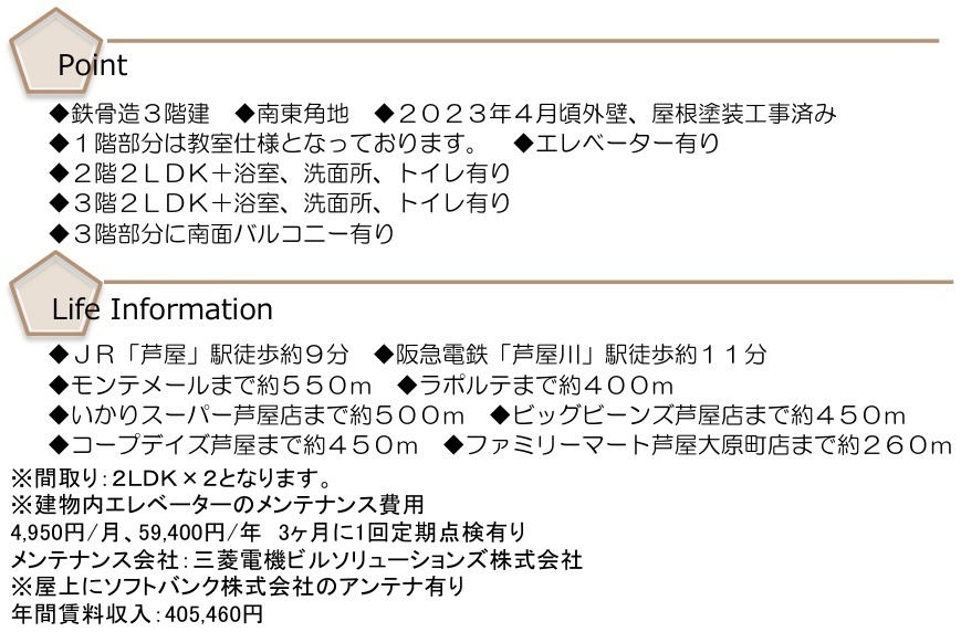 ◆1階教室×3・2階2LDK・3階2LDKの間取りです/エレベーターあり