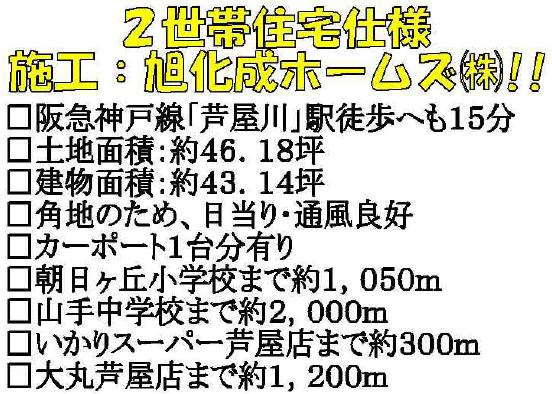交通 | JR東海道線 JR芦屋駅まで 徒歩15分 阪急神戸線 芦屋川駅まで 徒歩15分 JR東海道線 JR芦屋駅まで バス7分 停歩2分 |