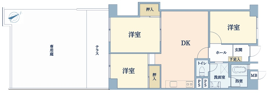 ◆全居室に窓あり/浴室に窓あり/南向きの専用庭33.47㎡あり/トランクルームあり