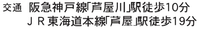 | 交通 | 阪急神戸線 芦屋川駅まで 徒歩10分 JR東海道線 JR芦屋駅まで バス6分 停歩2分 阪急神戸線 芦屋川駅まで バス3分 停歩2分 |