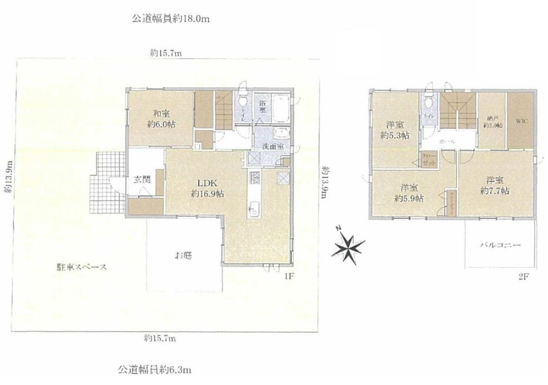 ◆南側公道幅員約6.3mと西側公道幅員約6.4m公道に面した角地です