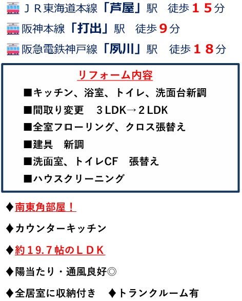 ◆阪神「打出駅」徒歩7分/JR「芦屋駅」徒歩16分