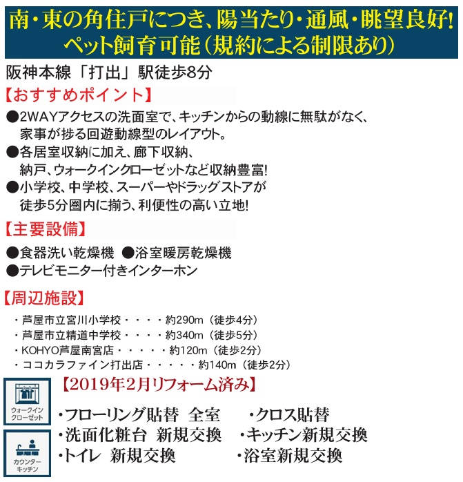 ◆阪神「打出駅」徒歩7分/JR「芦屋駅」バス8分「南宮町西」バス停徒歩2分