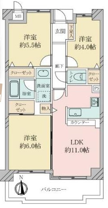 60.06m2 ( 18.16坪 ) | 3LDK 鉄筋コンクリート造 |