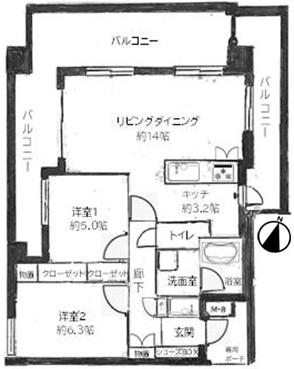 63.2m2 ( 19.11坪 ) | 2LDK 鉄筋コンクリート造 |
