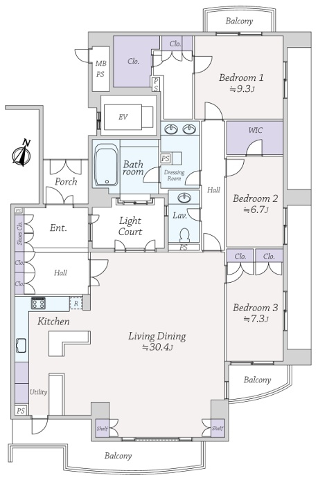 ◆LDKは約24.6帖あり/全居室に窓と収納あり/浴室は暖房乾燥機付/バルコニーは南側と東側にあり/北側にルーフバルコニー約30uあり/オートロックあり/宅配ボックスあり