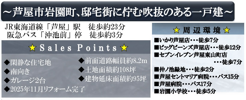 ◆イカリスーパー芦屋店・徒歩4分/岩園公園・徒歩4分/セブンイレブン芦屋東山町店・徒歩5分/岩園小学校・徒歩7分/大丸芦屋店・徒歩13分 |