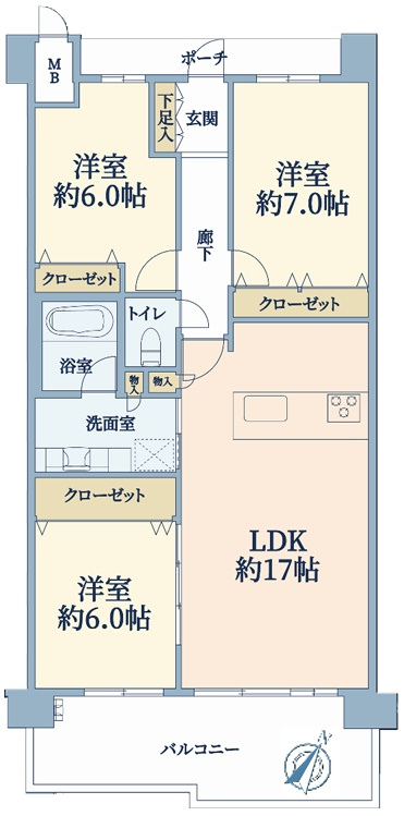 ◆専有面積80.17uの3LDKでLDKは約17帖あり