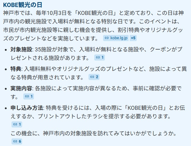 神戸市でKOBE観光の日が10月3日(金)に開催されて各施設が無料で利用等できます♪