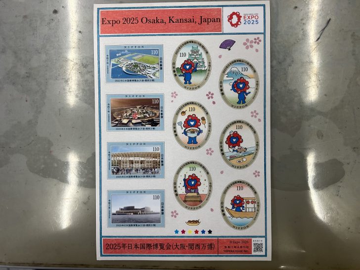 2025年日本国際博覧会(大阪・関西万博)の110円郵便切手(シール式)の10枚シートが販売されていました♪