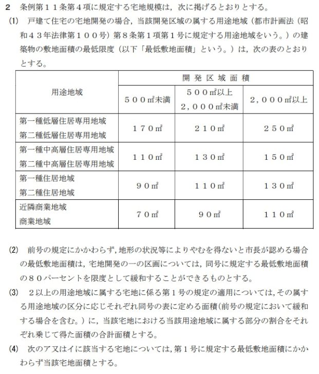 この条例は昭和50年代前半に決まったルールでそれ以前に販売されていた土地は、それ以下の面積の物件もあります。