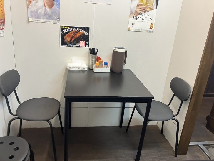 細長い店内には厨房とカウンター席が続き、その奥にあります。