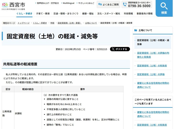 1点、芦屋市と西宮市で変わる部分が固定資産税・都市計画税の免除か負担かです。