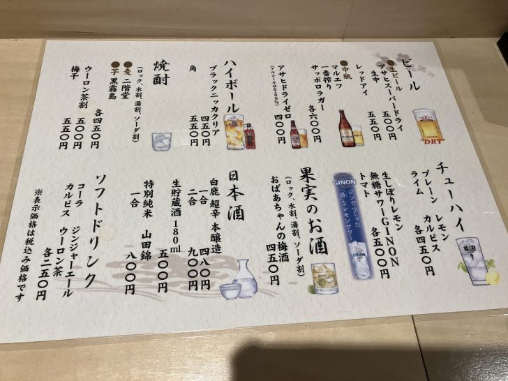 ↑飲み物のメニュー
