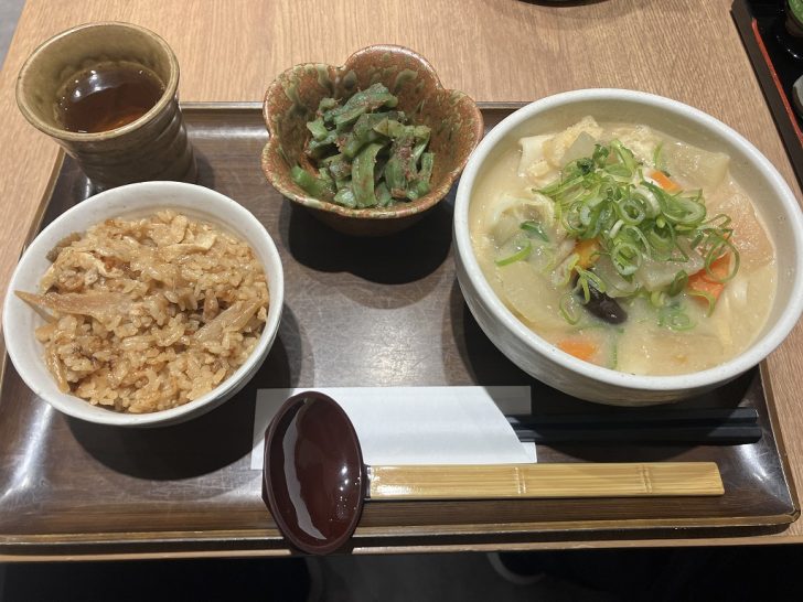 JR別府駅の構内にある「豊後茶屋 別府店」でお昼にランチで「だんご汁セット」を頂きました♪