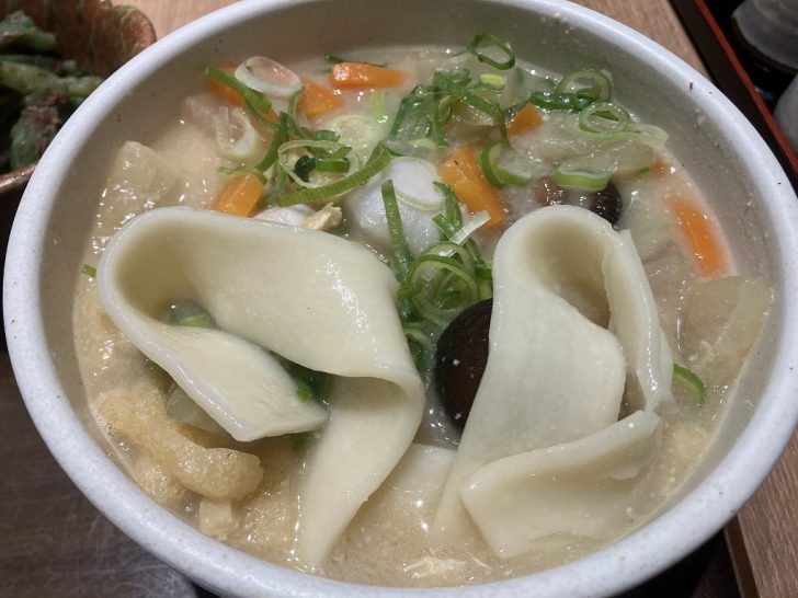 太いきしめんのよう感じですが、長さは10cmくらいですから麺ではない?です。