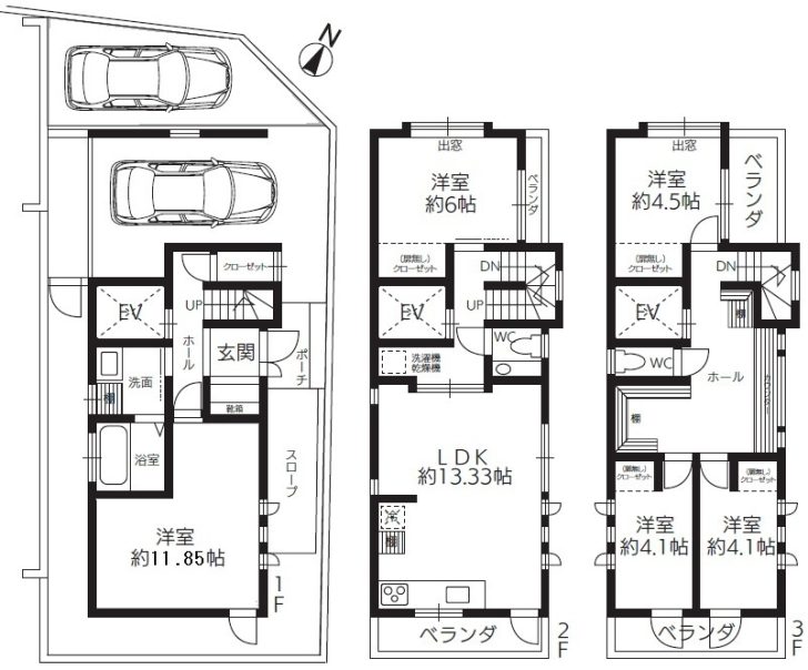↑3階建ての5LDKです