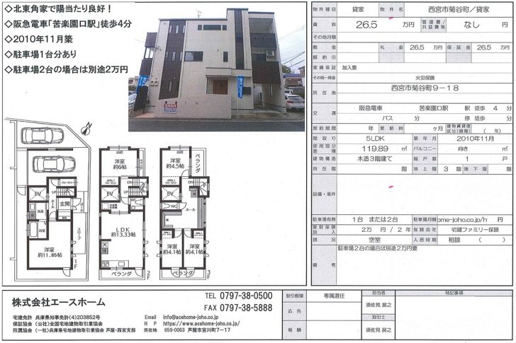 西宮市菊谷町にある一戸建て・貸家の賃貸募集を開始しました。