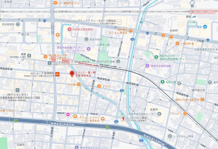 阪神電車「西宮駅」から南東へ徒歩5分くらいの場所にあります。