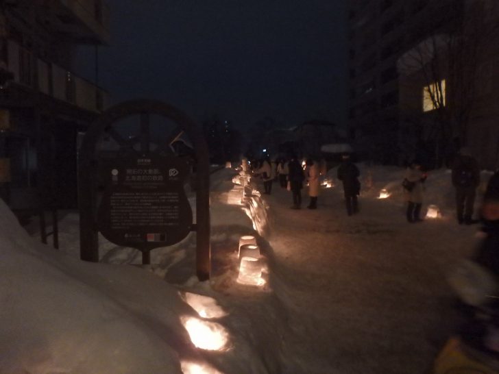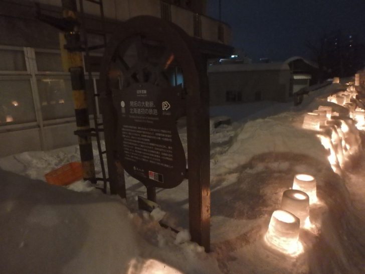 ↑JR小樽駅から小樽運河に向かって進む途中に現れる、旧国鉄手宮線もメイン会場のひとつ。