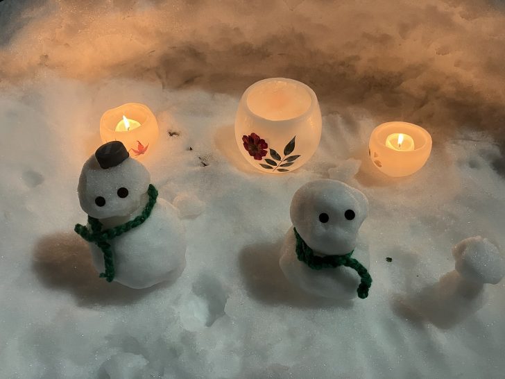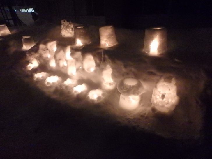 雪のオブジェやランタンがずらりと並び、幻想的です。