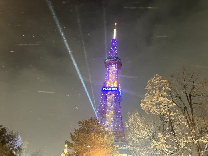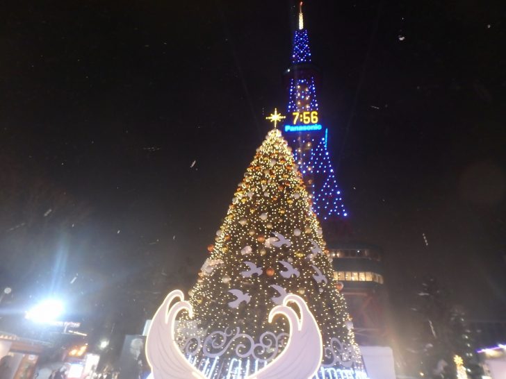↑さっぽろテレビ塔と巨大なクリスマスツリー