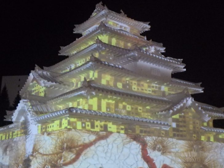 ↑会津若松市のシンボル「鶴ヶ城」のプロジェクションマッピング