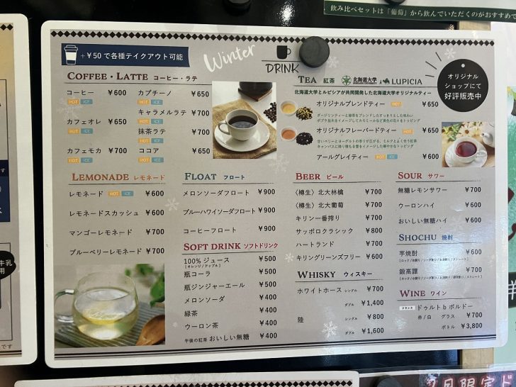 施設内にはインフォメーションセンター(多国語案内所」)と、「北大」オリジナルの商品が揃った土産店と、カフェレストランの「カフェdeごはん」があります。