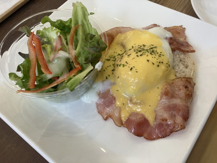 ↑モーニングメニューのエッグベネディクトセットを注文しました。
