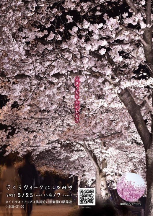 夙川公園のさくらライトアップは阪急・苦楽園口駅周辺で2026年(令和8年)3月25日(土)~4月7日(火)まで開催されます♪